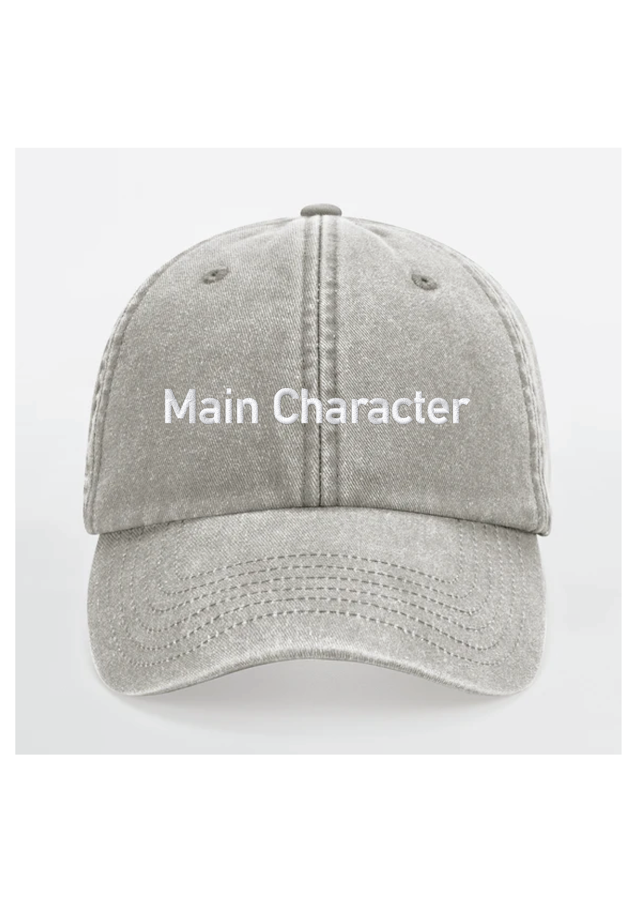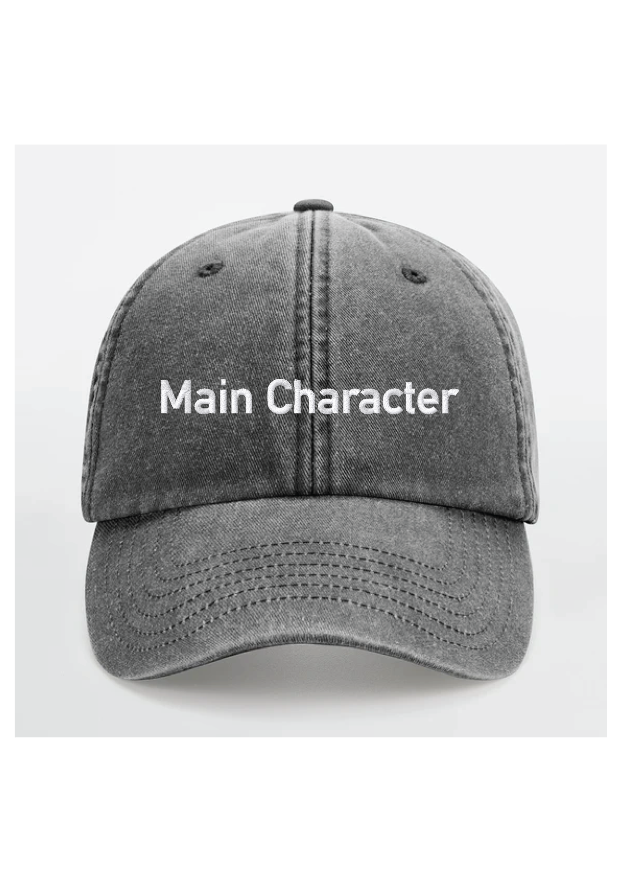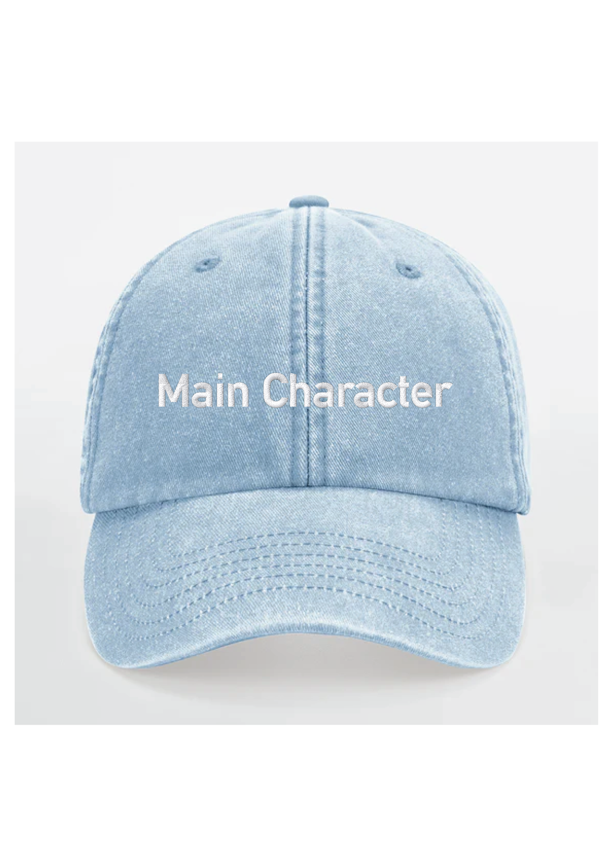 Fronten er broderet med “Main Character” – en selvsikker påmindelse om at tage hovedrollen i dit eget liv, uanset hvem der kigger med.